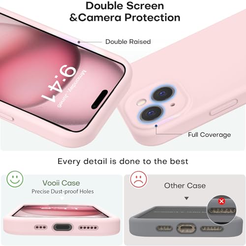 Vooii Compatible with iPhone 15 Plus Case, Upgrade Defender Liquid Silicone, [Full Covered Camera] [Soft Microfiber Lining] Shockproof Phone Case for iPhone 15 Plus 6.7 inch - Chalk Pink