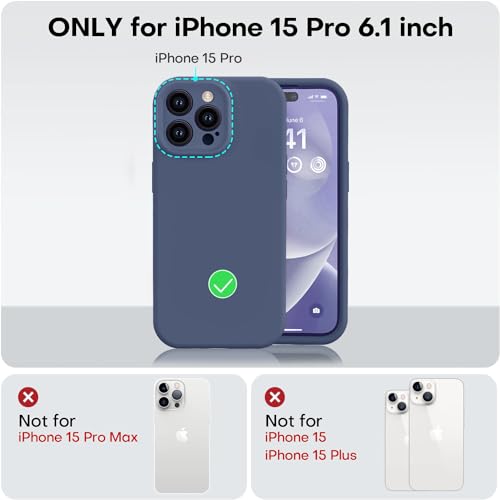 Vooii Compatible with iPhone 15 Pro Case, Upgrade Defender Liquid Silicone, [Full Covered Camera] [Soft Microfiber Lining] Shockproof Phone Case for iPhone 15 Pro 6.1 inch - Navy Blue
