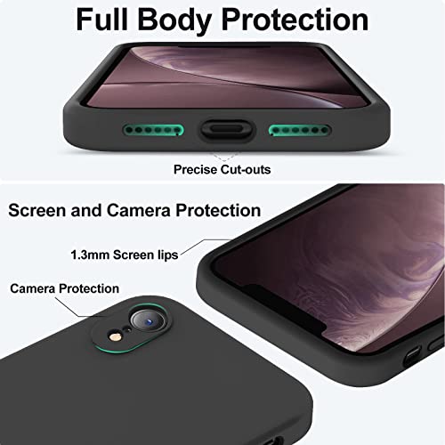 Vooii Compatible with iPhone XR Case, Upgraded Liquid Silicone with [Flat Edges] [Camera Protection] [Soft Anti-Scratch Microfiber Lining] Phone Case for iPhone 10 XR 6.1 inch - Black